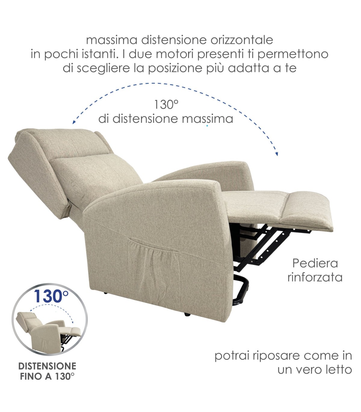 - RELAX ALZAPERSONA: Poltrona Alza persona Lift 2 motori indipendenti silenziati azionabili dal pratico comando. Garanzia di 2 Anni.