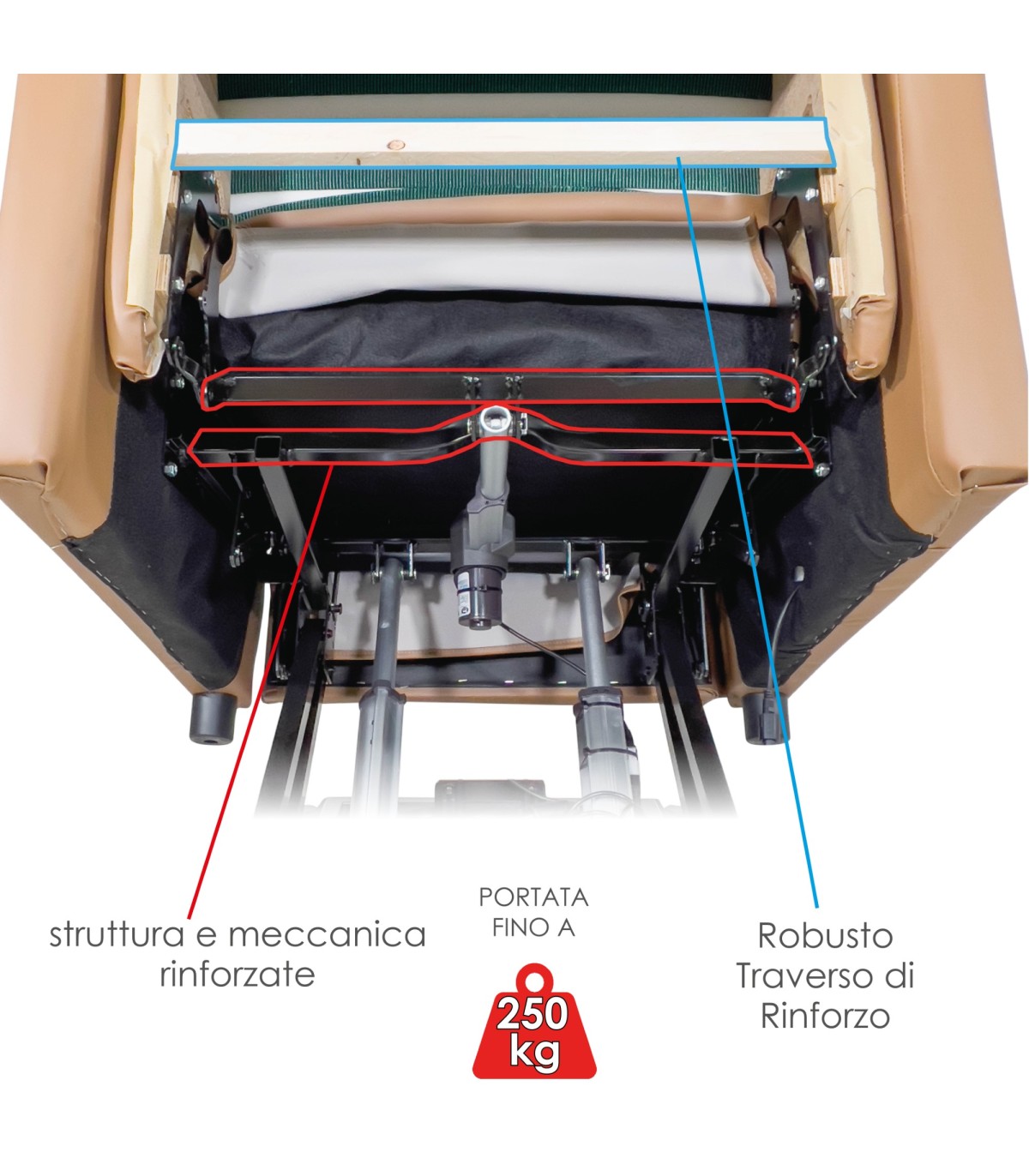 - Portata Massima: Si consiglia l’utilizzo di questa poltrona fino ad un peso Massimo di 250 kg